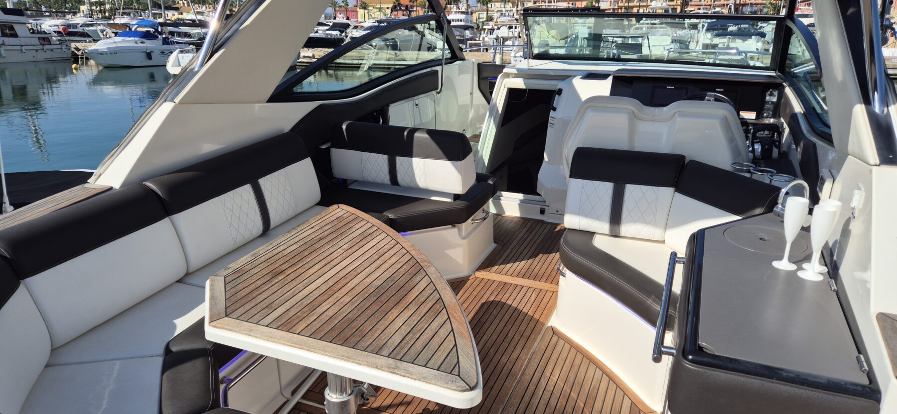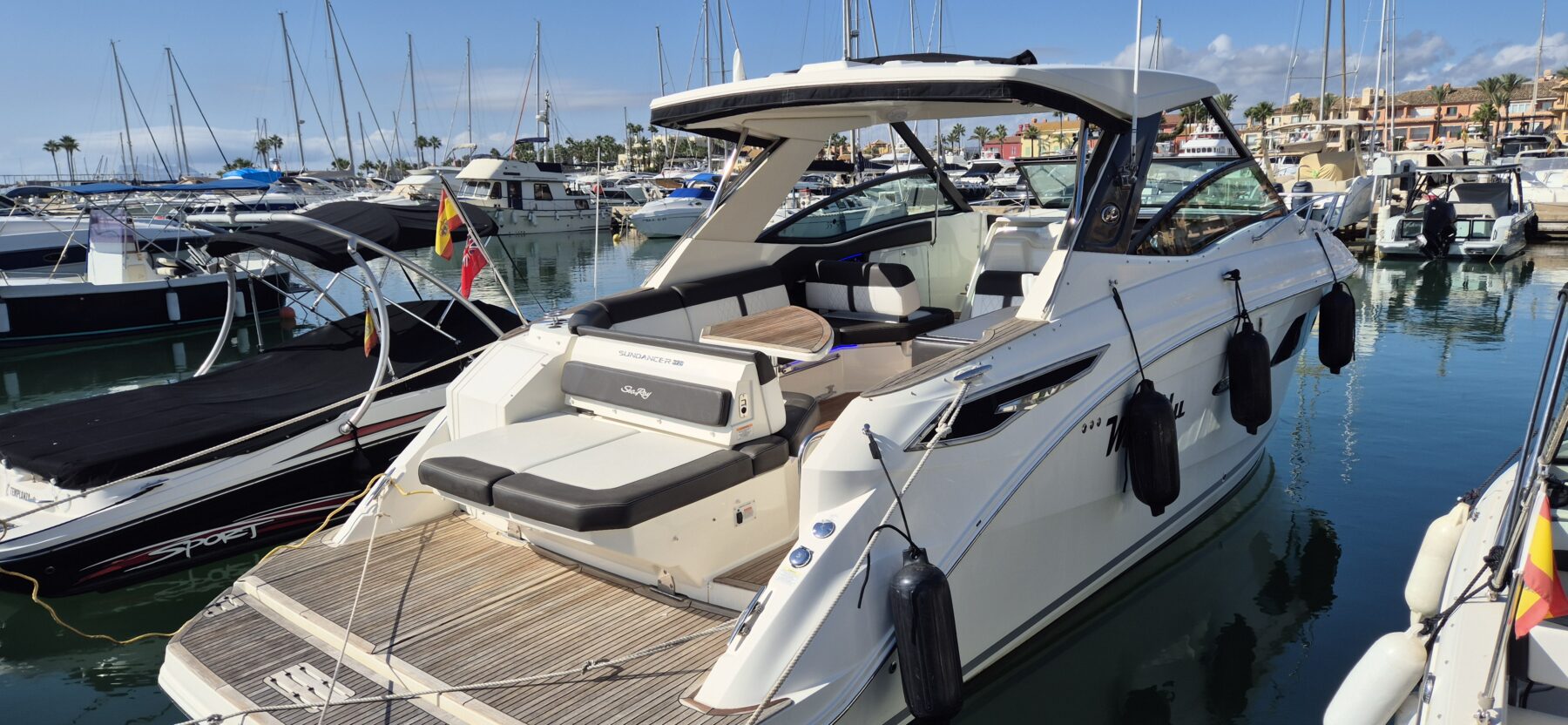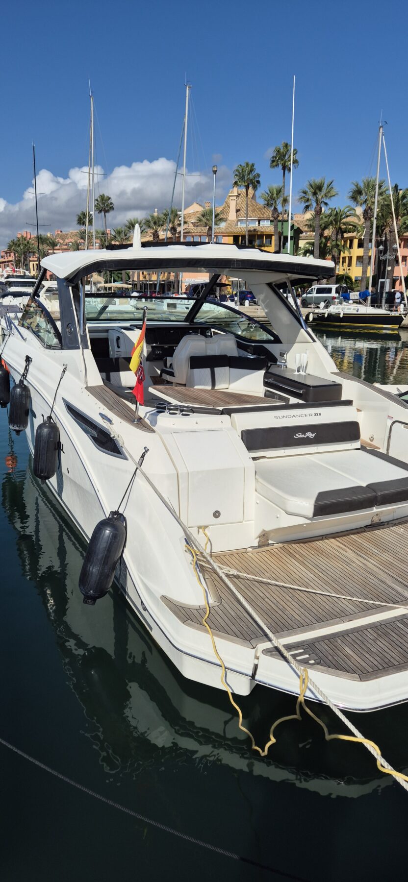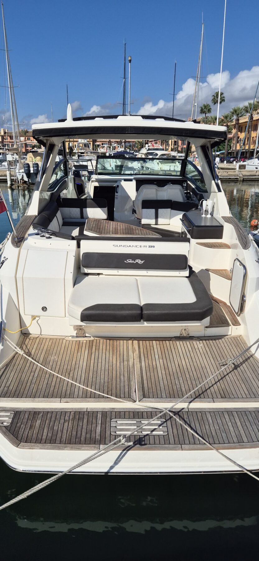 This 2018 Sea Ray 320 Sundancer is a superb example of one of Sea Ray’s most popular and versatile sport cruisers, combining sleek styling with exceptional comfort and performance. Powered by twin MerCruiser 6.2L MPI Bravo III engines, each producing 300hp, the boat delivers strong, responsive handling with only 165 engine hours on the clock. British-flagged and SSR-registered, the vessel comes with all EU taxes fully paid, making it an ideal choice for hassle-free cruising across European waters.